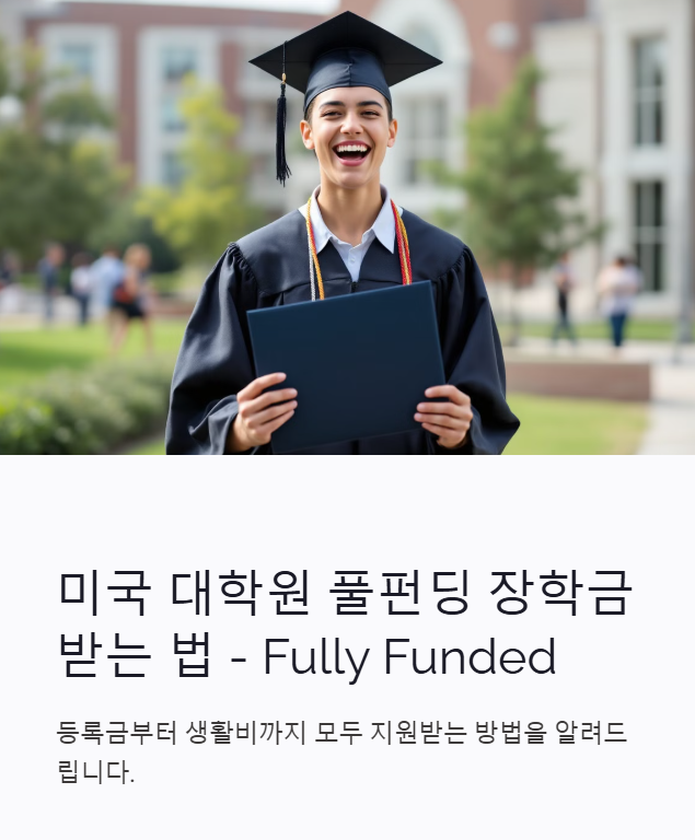 미국 대학원이 제공하는 풀펀딩 장학금, 어떻게 받을까? “미국 대학원은 너무 비싸지 않을까?”라는 걱정은 이제 접어두셔도 됩니다.미국의 많은 대학원에서는 유학생에게도 등록금 + 생활비까지 모두 지원하는 풀펀딩(Fully Funded) 장학금을 제공합니다.이번 글에서는 미국 대학원 풀펀딩 장학금의 유형, 신청 방법, 전략, 추천 대학까지 총정리해서 알려드릴게요. 📍 더 자세히 알아보기 👉 📑 목차풀펀딩 장학금이란?미국 대학원 풀펀딩 장학금 유형풀펀딩 받기 위한 필수 전략풀펀딩 제공 대학 & 프로그램 예시지원 시 체크리스트결론 및 요약표자동 생성 해시태그풀펀딩 장학금이란? **풀펀딩(Fully Funded)**이란, 대학원 재학 중 다음 모든 비용을 전액 지원받는 것을 의미합니다.✅ 포함 항목:등록금..