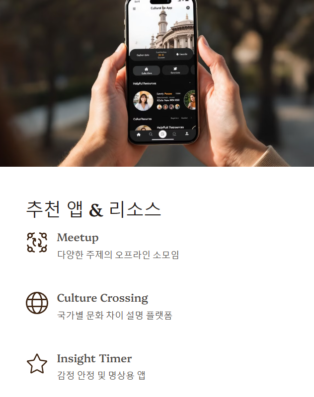 | ✅ 한국 커뮤니티와 적절히 연결 유지 | 완전히 단절되지 않고, 공감할 수 있는 소통 창구를 유지하는 것도 중요합니다. |