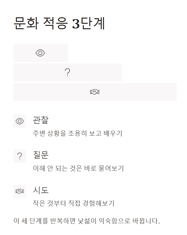 문화 적응 3단계 전략