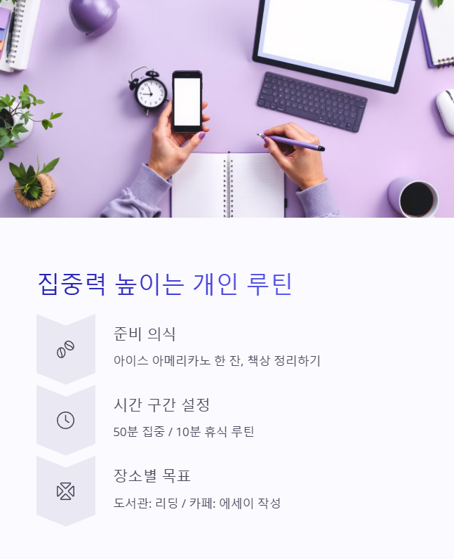 - 집중력을 높이는 개인 루틴 만들기