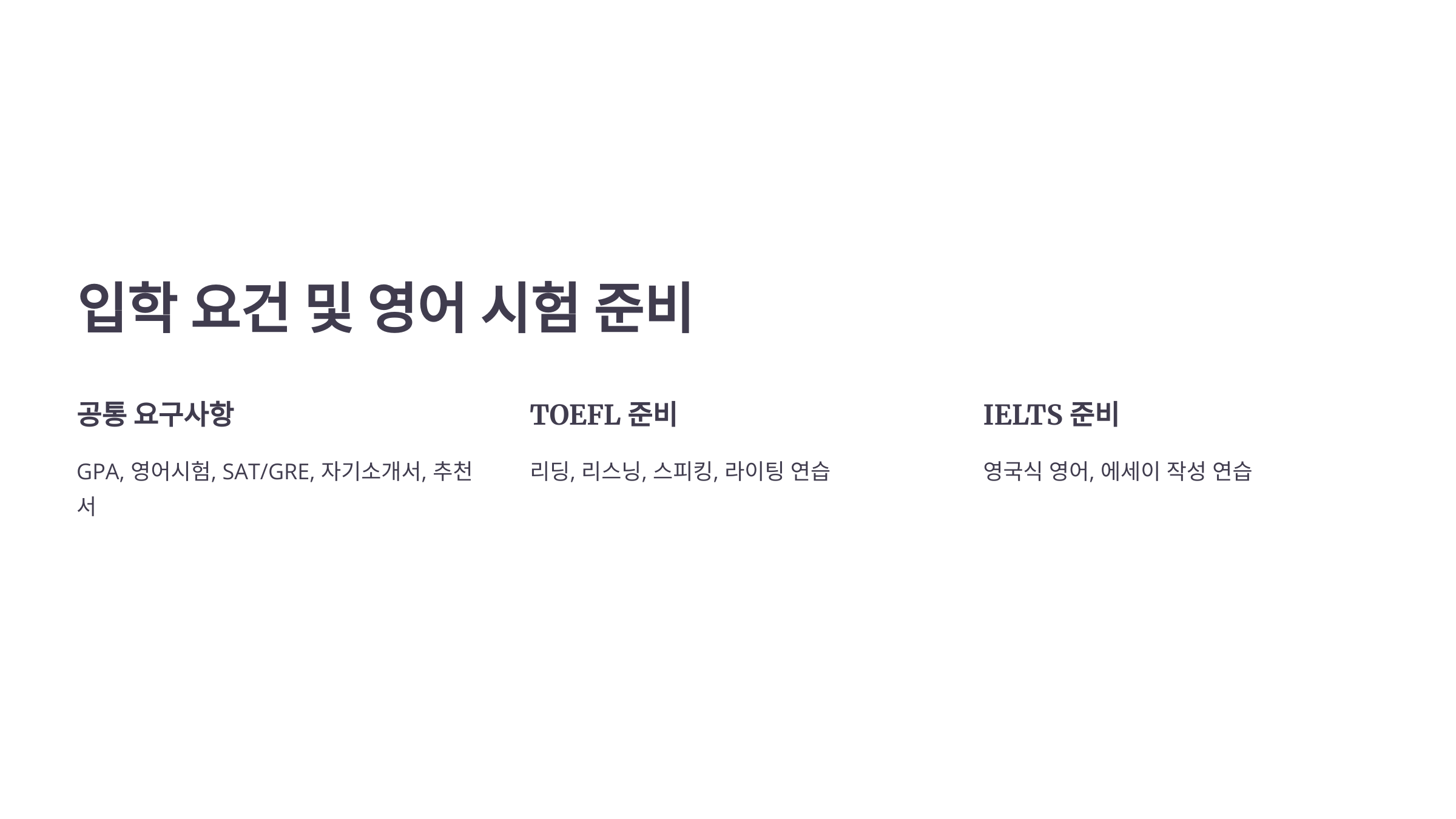 3. 입학 요건 및 영어 시험 준비 📚 📍 유학 영어 완벽 준비 👉 📍 유학 비자 신청하기 👉