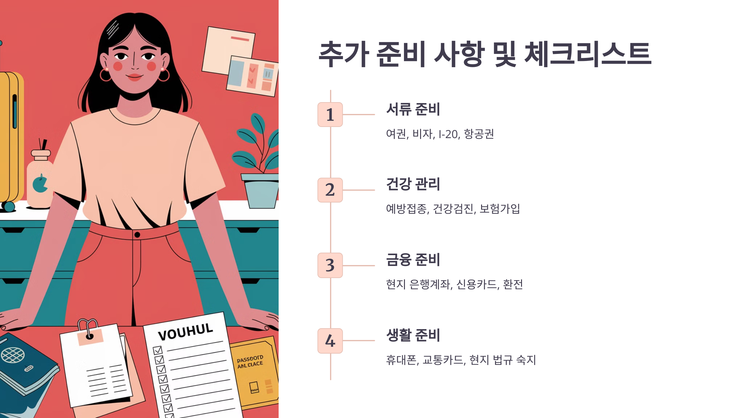 이 모든 사항을 꼼꼼히 준비하면 미국 유학을 더욱 순조롭게 시작할 수 있습니다! 🎓✈️