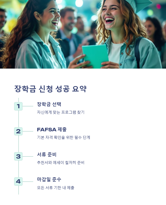 미국 정부 장학금을 받기 위해서는 신청 마감일을 놓치지 않고, 철저한 준비가 필요합니다. 위 가이드를 참고하여 성공적인 장학금 신청을 진행하세요!