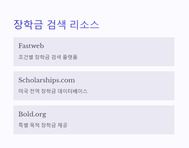 | 플랫폼 적극 활용 | Fastweb, Scholarships.com에서 조건 맞춤 검색 |