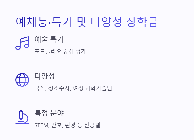 다양성 장학금 주목 | 국적, 성별, 전공 특성에 따른 기회 다양 |
