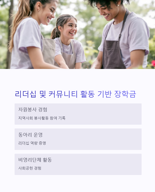 💼 1. 리더십 및 커뮤니티 활동 기반 장학금