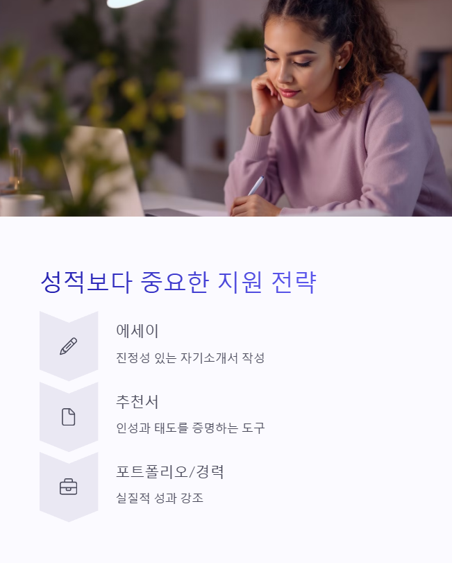 에세이·추천서 강화 | 진정성 있는 자기소개서가 당락 좌우 |