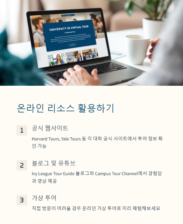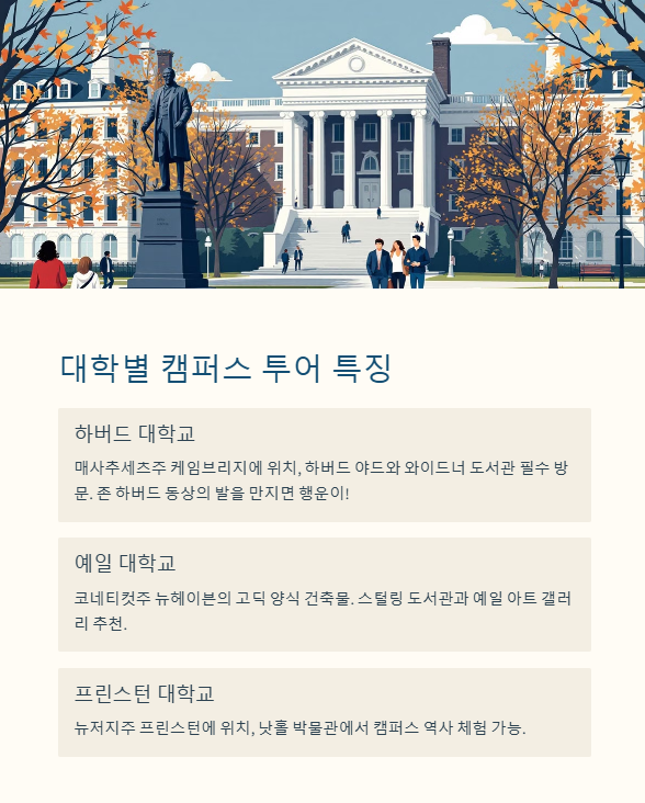 - 아이비리그 대학별 캠퍼스 투어 특징