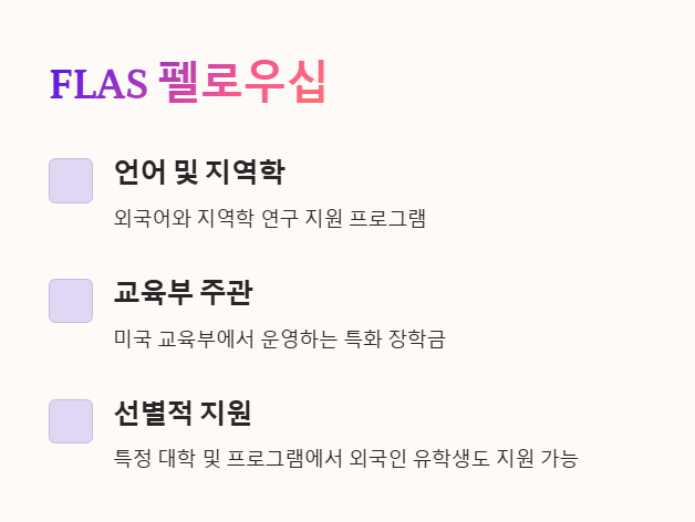 FLAS | 외국어·지역학 연구에 지원, 학교마다 자격 상이 |