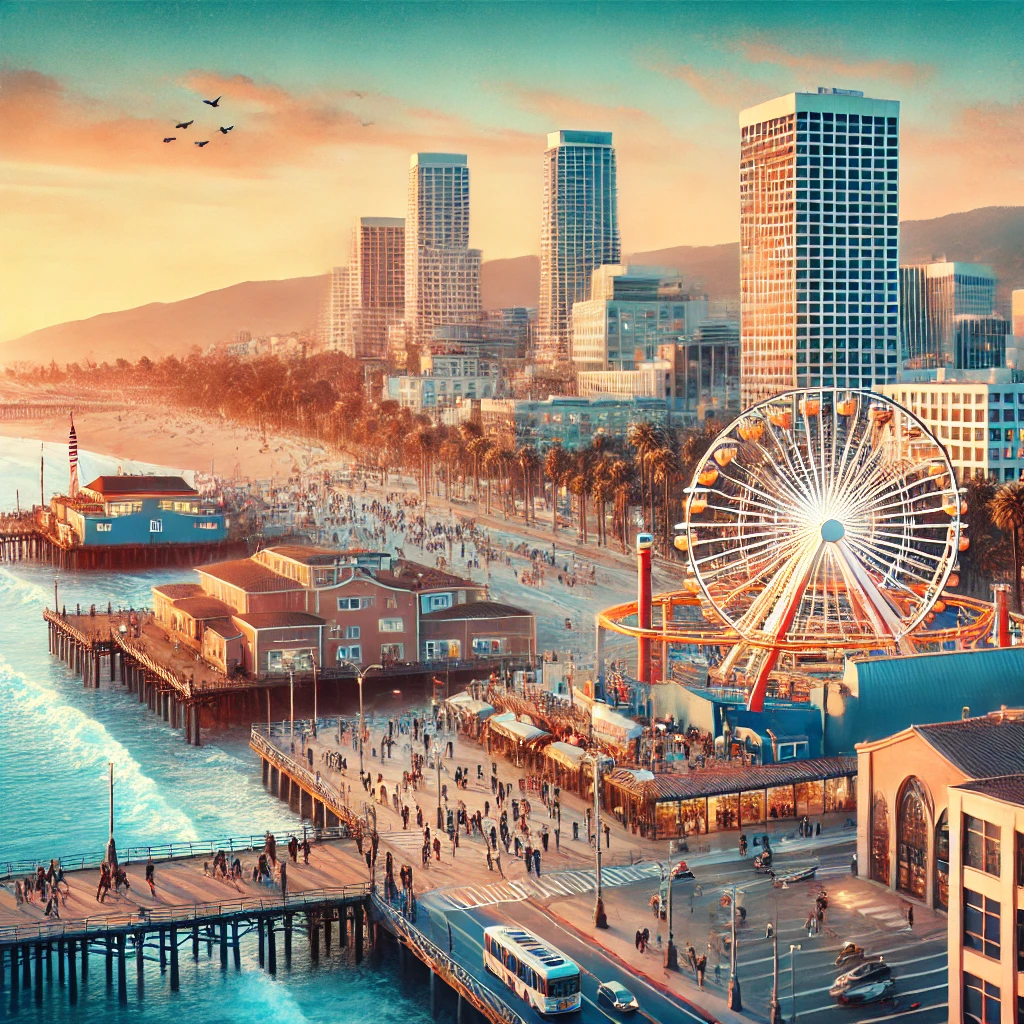 SMC는 미국 캘리포니아 주 로스앤젤레스(LA) 카운티 서부에 위치한 해안 도시 산타모니카에 자리하고 있습니다. 산타모니카는 연중 온화한 기후를 자랑하며, 아름다운 해변과 관광 명소로도 유명합니다. 이 도시는 할리우드, 디즈니랜드, 유니버설 스튜디오와도 가까워 학생들이 문화적 경험을 쉽게 접할 수 있습니다. 공부와 함께 다양한 문화적 혜택을 누릴 수 있는 최적의 위치에 있습니다.