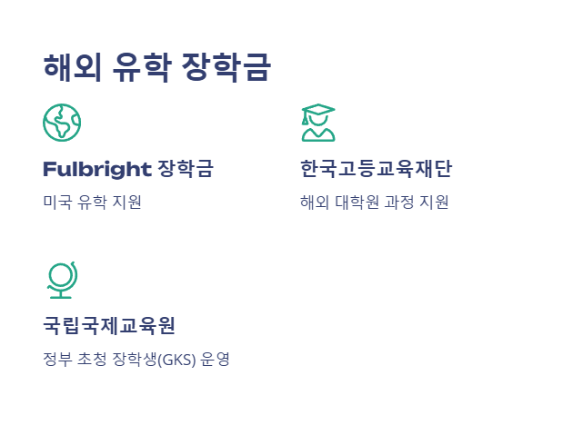 해외 유학을 계획하고 있다면 다음과 같은 기관에서 장학금을 받을 수 있습니다.