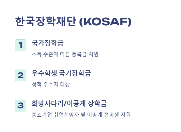 ✅ 우수학생 국가장학금: 성적이 우수한 학생을 대상으로 한 장학금
